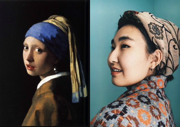 Первая публикация – картина Яна Вермеера «Девушка с жемчужной серёжкой» и фотография, на которой изображена я, в мамином шарфе, завязанном на манер тюрбана (совсем не так, как на героине Вермеера).