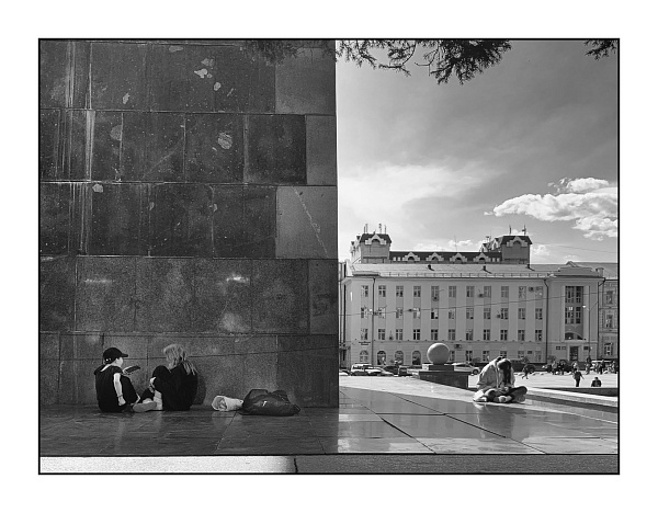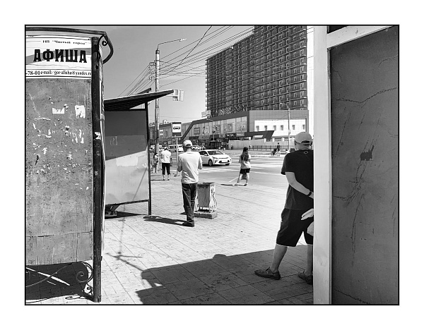 Вот вам город, снятый мимоходом, просто так. Что-то зацепило, удивило — щёлк, — и в карман. У всех же есть такие фото, как бы «низачем» или «на всякий случай»? Мимолётные документы нашей жизни. Для пущей «историчности» перевёл их в ч/б и добавил незатейливой эстетики 70-х. Сразу теперь и не понять, какой год и чем снималось. Просто жизнь.