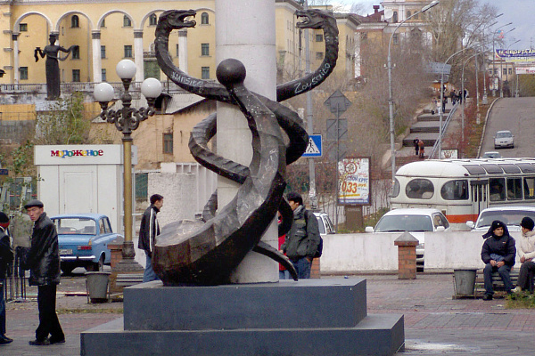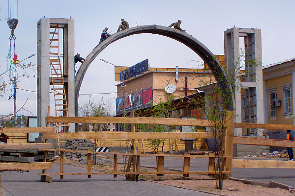 Начало строительства дугана Зелёной Тары в Иволгинском дацане и Триумфальной арки в Улан-Удэ, старый фонтан у Оперного, Борис Мироманов.