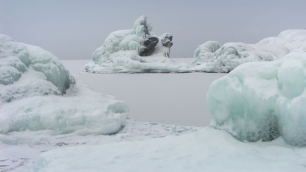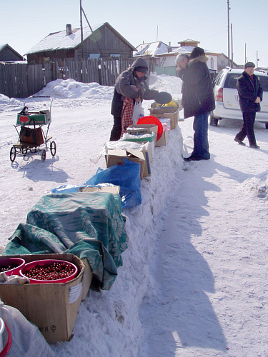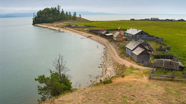 Почта и ледовая переправа в Усть-Баргузине, вид на гору Шастын Ундэр в Улюкчикане.