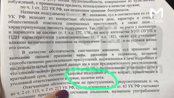 Суд признал мужчину виновным, но дал ему условный срок, учитывая смягчающие обстоятельства. Среди них – возраст подсудимого, состояние его здоровья, наличие у него семьи и кота.
