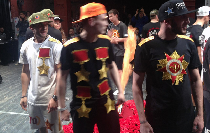 После 9 мая, в соцсети одна девушка задавала вопрос «где та точка невозврата, которую нельзя проходить?» Мне кажется, что именно в этом году мы эту точку успешно прошли. Потому, что именно в юбилейном году окончательно утвердилось то, что на языке функционеров называется формат. Ведь юбилейные торжества а-приори эталонные, и теперь именно под них и будут зачищаться празднования последующих годовщин. Так что впереди нас ждут 71-процентные, потом 72-процентные и т.д., скидки на мясо, шампуни, пылесосы, мебелишку, золотишко - кто не подсуетился нынче, в следующий раз не упустит шанса поторговать с помощью Дня Победы. Ведь нынче, под юбилей, в каком блеске явила себя коммерческая инициатива! В оранжево-черную полоску выпускали тапки, шарфы, мебельную ткань (на ней еще кроме георгиевской ленточки воспроизведены фотографии фронтовиков), мужские трусы с резинкой в характерных цветах и надписью «Я - русский солдат» в непосредственной близости от стратегически важного места мужской анатомии; георгиевской ленточкой обматывали и увивали все живое и неживое, движимое и недвижимое - общественные сортиры, коммерческие палатки, баннеры с рекламой, например, фарша под названием «Домашний», бутылки спиртного, брошки, заколки и ободки для волос, браслеты, юбки, и детали модной обуви. Изображения Звезды Героя Советского Союза красовались на шортах, как раз в районе чресел.