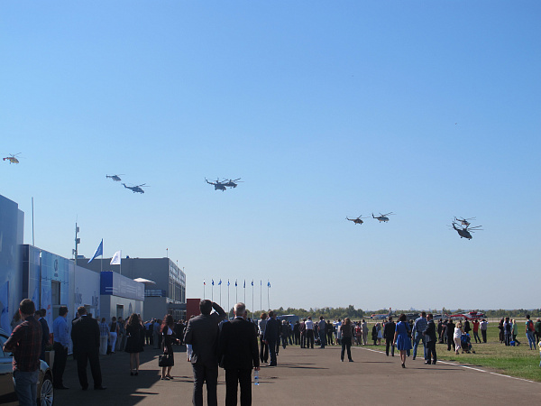 Экспозиция техники раскинулась на несколько километров. Свой ряд в ней занял и стенд холдинга «Вертолёты России». Между машинами Московского вертолётного завода имени Миля и Казанского вертолётного заводами расположился Улан-Удэнский авиационный завод.
