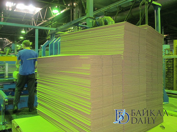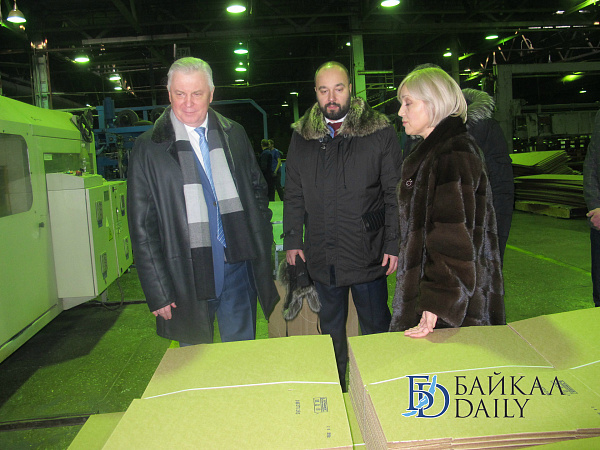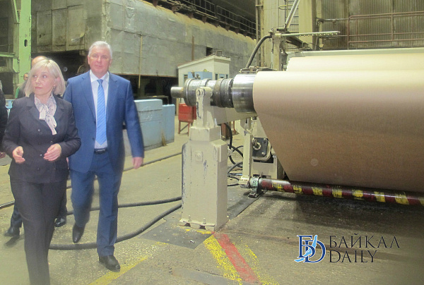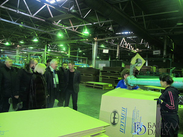 Глава Бурятии осмотрел завод, сравнил пробники картона до и после модернизации, и встретился с заводчанами.