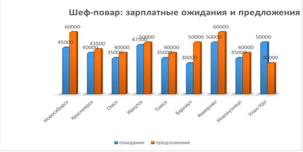 При этом, среднее вознаграждение для шеф-повара в Сибири за год составило 55 000 рублей.