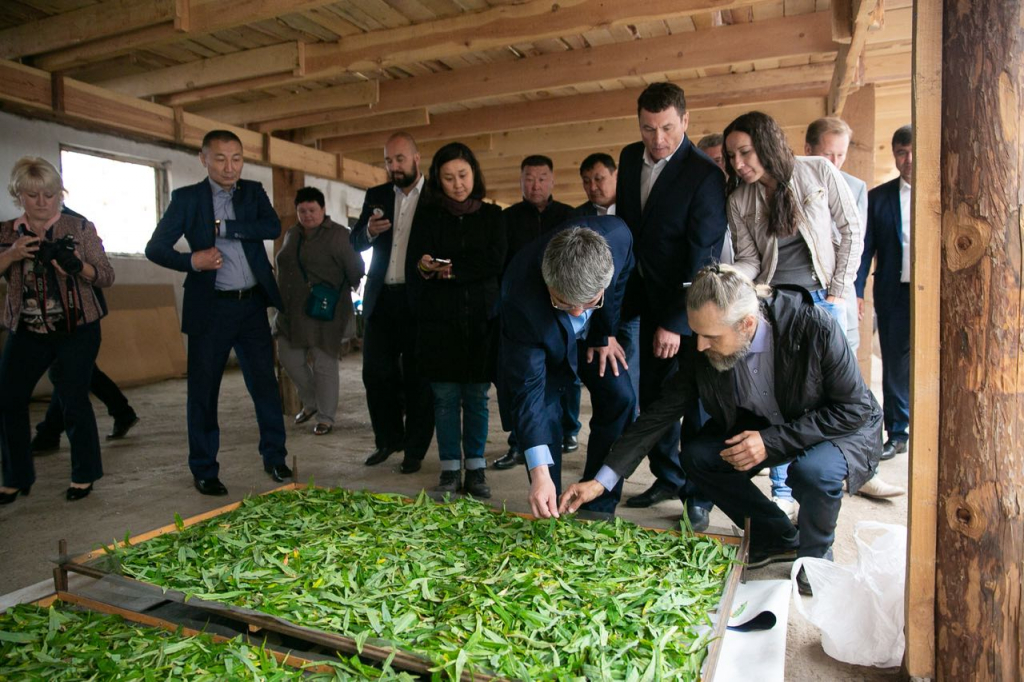 Главе республики Бурятия показали, как и до какой кондиции вялят собранный иван-чай, как перерабатывают (перебирают, закладывают в роллер или, чтобы изготовить гранулы, – в мясорубку), как в течение суток ферментируют и выкладывают в печь. Весь цикл производства, начиная с заготовки сырья, производится вручную.