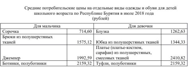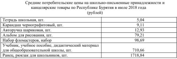 - В этом году материальные затраты накануне Дня Знаний стали чуть менее ощутимыми для семейного бюджета. Школьно-письменные принадлежности и канцелярские товары в июле 2018 года по сравнению с соответствующим периодом предыдущего года подешевели в среднем на 2,1 %, одежда для детей школьного возраста – на 1,2 %, - сообщили в Бурятстате.