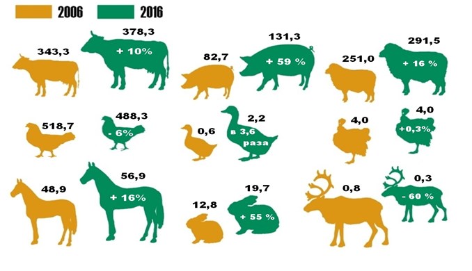 - По категориям хозяйств сельскохозяйственные организации существенно нарастили свой удельный вес в поголовье свиней с 35 % до 71 %. Произошло увеличение в поголовье птицы и крупного рогатого скота, соответственно на 8 и 2 процентных пункта, снизили в поголовье овец и коз с 50 % до 27 %. Фермерские хозяйства и индивидуальные предприниматели увеличили свою долю в поголовье крупного рогатого скота с 7 до 13 %, овец и коз с 7 до 31 %, лошадей с 13 до 20 %. Хозяйства населения снизили свою долю в поголовье всех видов скота, за исключением лошадей, - уточнили в Бурятстате.
