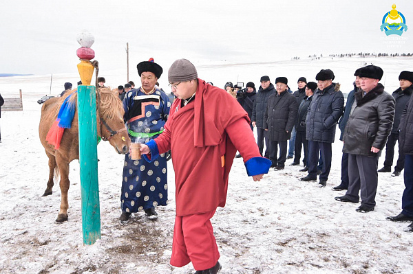На животноводческой стоянке СПК «Ульдурга» состоялся обряд выпуска жеребца. Алексей Цыденов повязал на гриву хадак и отпустил лошадь с коновязи. После глава СПК Булат Будажанаев вручил сертификаты на овец отличившимся работникам по программе «Социальная отара». Это собственный проект предприятия по поддержке своих сотрудников. Алексей Цыденов оценил инициативу и поздравил отличившихся работников. Отметим, что сельскохозяйственное предприятие является уникальным – одновременно племзаводом по разведению казахской белоголовой породы коров и племрепродуктором по разведению бурятской породы лошадей и овец породы «буубэй». При этом делается упор на номадное животноводство - лошади находятся на пастбищном содержании круглогодично.