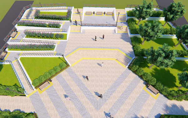 Весь объект состоит из трёх частей, где первая часть – территория от улицы Буйко до Комсомольской, вторая зона – от Комсомольской до зоны мемориала, а третья – мемориальная часть площади.