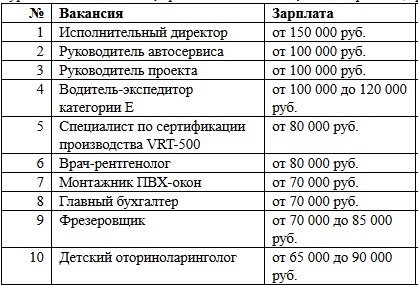 Кроме того, в рейтинг вошли предложения для руководителя автосервиса, врача-рентгенолога, главного бухгалтера и другие.