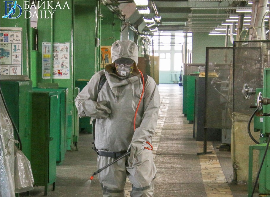 - Минуты три требуется, чтобы этот костюм надеть. По массе не тяжёлый, только душно в нём. Территорию достаточно большую обходим, административную часть, цеха, где производство идёт. Везде ходим, все обрабатываем, дезинфицируем, - рассказал «Байкал-Daily» работник по дезинфекции.
