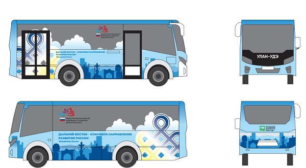 Автобусы будут бело-голубых оттенков, с изображением «узла счастья», «головы» Владимира Ленина (известного в Бурятии памятника), театра оперы и балеты, триумфальной арки и постамента с местного «Арбата».