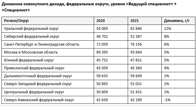 Структура самых высокооплачиваемых отраслей за год в стране почти не изменилась: в лидерах по-прежнему ИТ (120 157 руб.) и строительство (115 216 руб.). Они же показали и самые высокие темпы прироста – от 10% до 14%. «Выше рынка» - на 8% - также выросли зарплаты в финансовом секторе, в производстве товаров народного потребления (не пищевых), а также в автомобильном бизнесе. Отрасль HoReCa все еще испытывает на себе давление пандемии – зарплаты в ней за год почти не изменились и остаются на уровне 52 тысяч рублей.