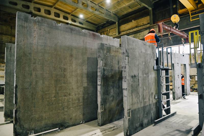 На сегодняшний день на комбинате полностью запущен производственный процесс. За одну смену завод сможет производить один этаж двухподъездного 16-этажного дома из 60 панелей.