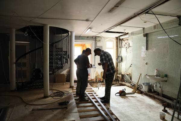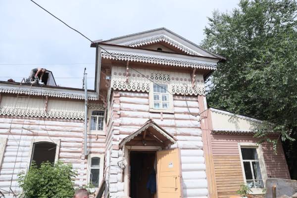 - На сегодня выполнено 50% всех видов работ: заменены балки полов, полностью перестелены сами полы. Произведено лечение венцов, согласно проекту заменена и утеплена кровля. Ведутся работы по очистке фасада от старой краски и шпаклевки. Также проложена электропроводка, ведется установка приточно-вытяжной системы вентиляции, - сообщила Ирина Ковалева.