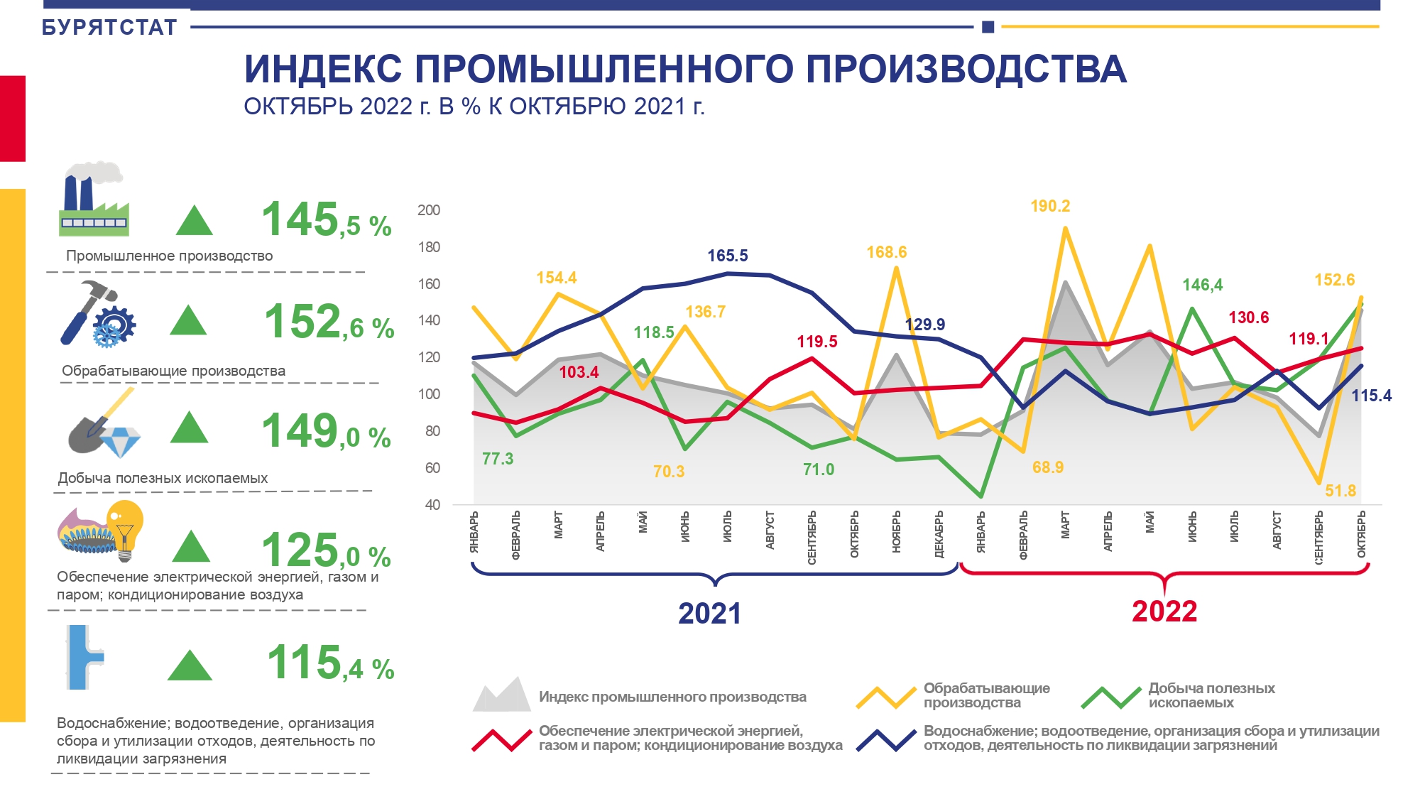Позитивную динамику при этом продемонстрировали все четыре сектора экономики, которые учитываются при расчёте индекса ПП. В энергетическом секторе, тепло- и газоснабжении рост составил 22,3%, обрабатывающих производствах – 12,3%, добыче полезных ископаемых – 8,4%. Увеличился этот показатель и в отраслях, связанных с водоснабжением, водоотведением, утилизацией отходов и ликвидацией загрязнений (на 1,6%).