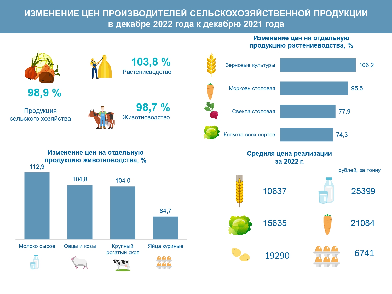 За год – с декабря 2021-го по декабрь 2022-го – в Бурятии на 1,1% снизились цены на сельхозпродукцию, реализованную по всем каналам, в том числе на 1,3% – на животноводческую. А вот продукция растениеводства, напротив, наценилась на 3,8% из-за подорожания картофеля (на 18,2%) и зерновых культур (на 6,2%).