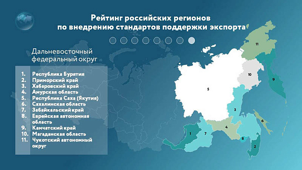 Итоги реализации нацпроекта «Международная кооперация и экспорт» в субъектах России за 8 месяцев этого года подвёл Российский экспортный центр. По результатам мониторинга Бурятия заняла первое место в рейтинге российских регионов по Дальневосточному федеральному округу и 17 место в общем рейтинге регионов Российской Федерации по внедрению регионального экспортного стандарта 2.0 (РЭС 2.0) – целевого показателя нацпроекта.