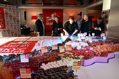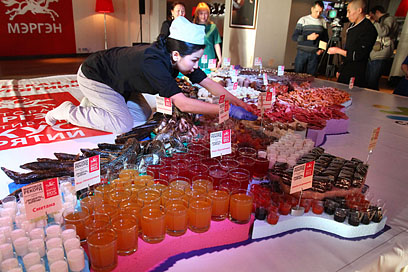 Карта была создана из местной продукции и национальных блюд – к примеру, буузы, оремог (колбаса-плетенка) или хошхоног (блюдо из внутренностей барана).