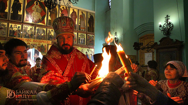 Из аэропорта «Байкал» огонь доставили в Свято-Троицкий храм, где владыка Савватий, архиепископ Улан-Удэнский и Бурятский, отслужил праздничную литургию. Огонь также будет передан в храм Рождества Христова, а позже появится во всех храмах Улан-Удэ, где прикоснуться к нему сможет каждый желающий.