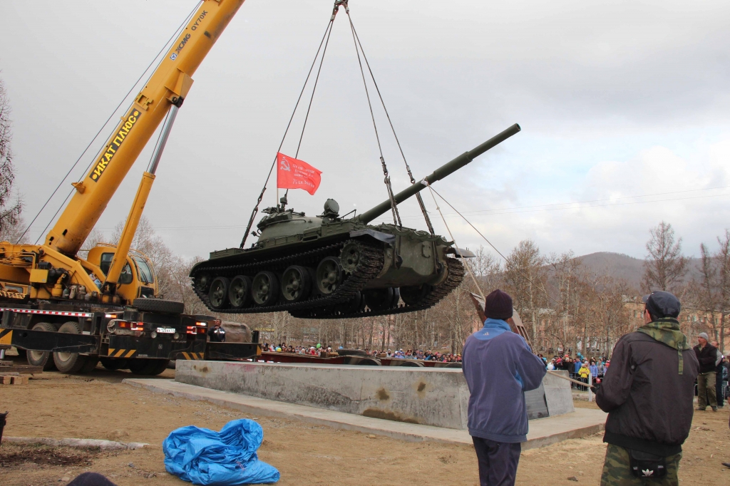 В самом Закаменске от стелы до сквера Победы танк прошел через живой коридор из горожан. У обелиска в сквере Победы его поджидали рабочие ЗАО «Закаменск», которые занялись установкой памятника на подготовленный постамент, сообщили «Вести Закамны».