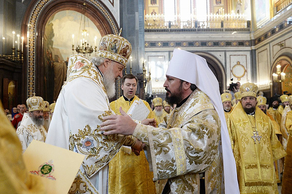 Святейший Патриарх Московский и всея Руси Кирилл совершил Божественную литургию в кафедральном соборном Храме Христа Спасителя в Москве. За праздничным богослужением глава Бурятской метрополии, управляющий Улан-Удэнской и Бурятской епархией владыка Савватий возведен в сан митрополита, сообщает пресс-служба бурятской епархии.