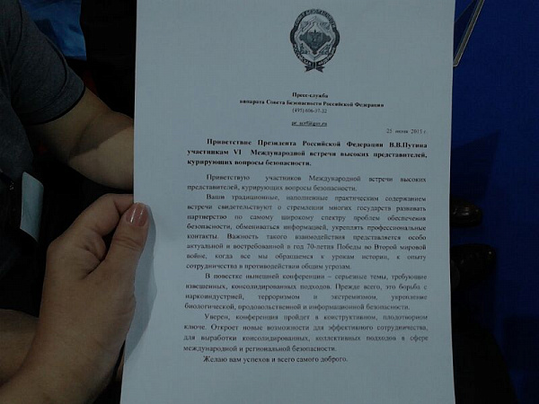 Обращение главы государства на открытии зачитал секретарь Совбеза РФ Николай Патрушев.