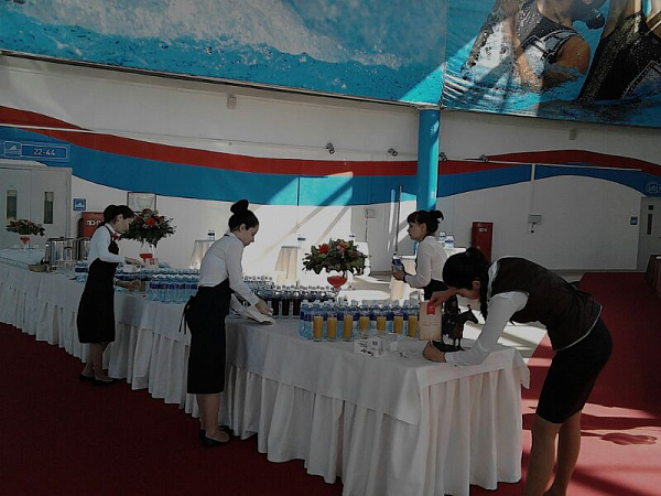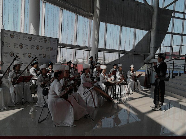Перед прибытием гостей в холле ФСК выступал народный оркестр, исполняющий национальные мотивы.