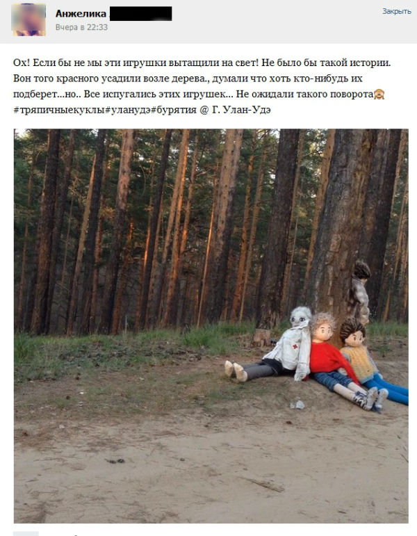 В Улан-Удэ стали известны подробности пугающей находки. Объявились те, кто вытащил на всеобщее обозрение странных метровых кукол.