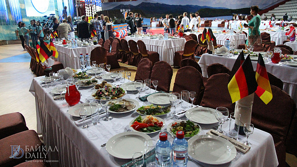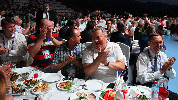 Специально для мероприятия в одном из залов комплекса построили небольшую сцену, на которой выступили ведущие коллективы города. Сами участники соревнований сидели за банкетными столами, и выходили на пьедестал почета только во время церемонии награждения.