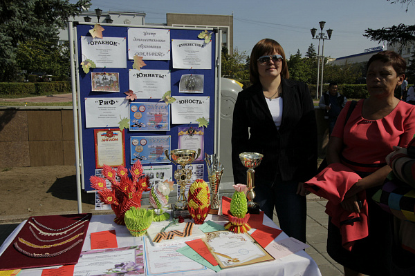 Кроме того, работала выставка муниципальных учреждений дополнительного образования «Ярмарка творчества». На ней все желающие смогли записать своих детей в кружки, студии и секции.