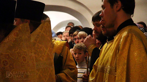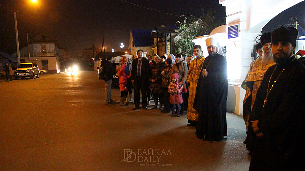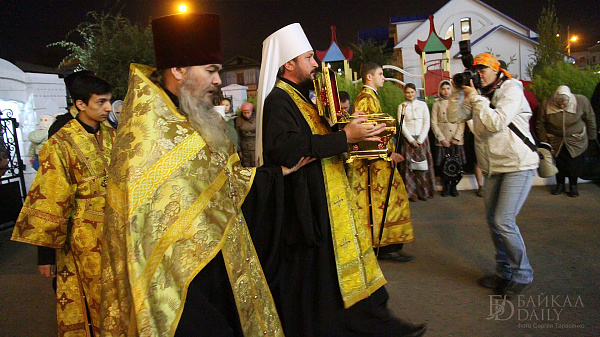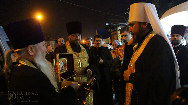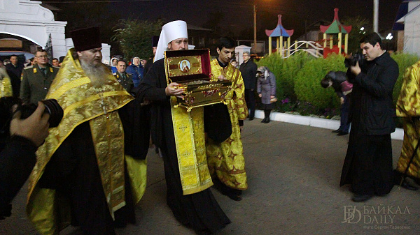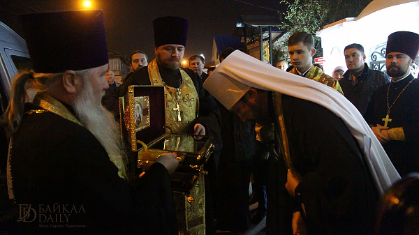 Ковчег с мощами Равноапостольного князя Владимира прибыл в Улан-Удэ согласно графику, вечером воскресенья. Святые мощи встречали глава Бурятской митрополии Савватий, священство и прихожане.