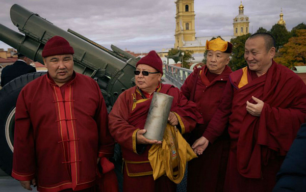 В Северной столице продолжают праздновать 100-летие петербургского дацана. На юбилей прибыл XXIV Пандито Хамбо Лама Дамба Аюшеев. 7 октября глава буддистов России совершил полуденный выстрел из пушки на Петропавловской крепости.