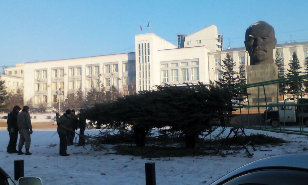 К установке главной ели приступили в столице Бурятии. Площадь Советов потихоньку превращается в «зимнюю сказку».