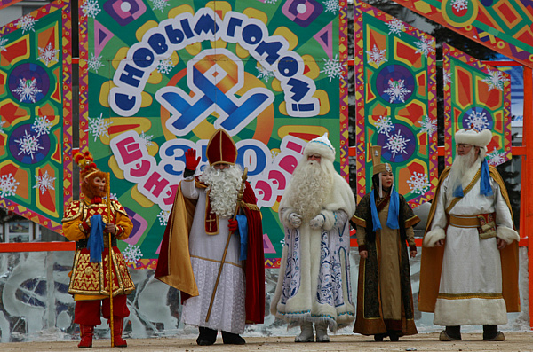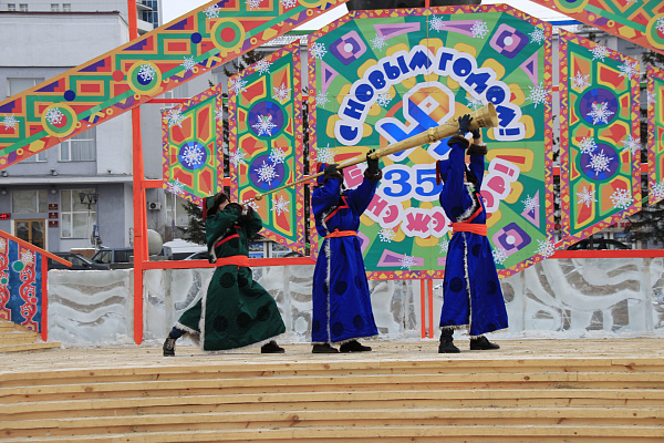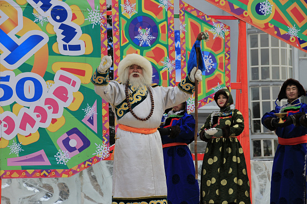 Многочисленную толпу на площади Советов поприветствовали сказочные персонажи во главе с бурятским Белым Старцем. В этом году к нему в гости приехали Байкальский Дед Мороз из Иркутской области, монгольский Увлин Увгун, Святой Микулаш, который является Дедом Морозом для Чехии и Словакии, и Царь Обезьяна из китайского города Хух-Хото.