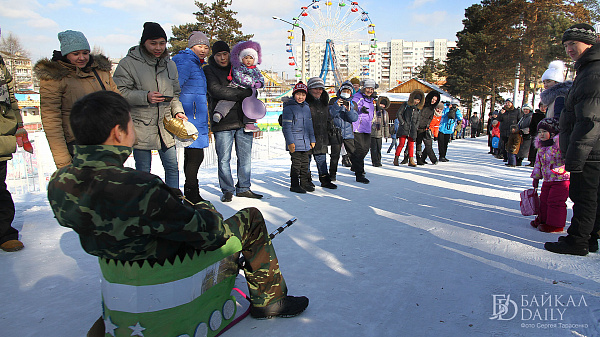 «Изюминкой» празднования 23 февраля стал конкурс необычных саней «Сани Battle». На суд жюри были представлены сани-дракон, сани-ракета и даже сани-танк. Победу одержали сани, выполненные в виде корабля, - творение креативной команды Восточно-Сибирского государственного института культуры.