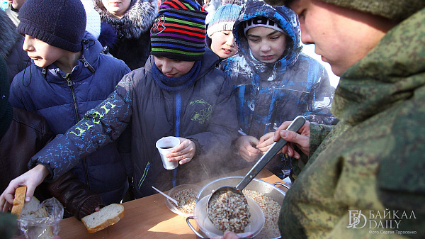 Сегодня мужчины были приглашены на празднование Дня защитника Отечества в парк «Юбилейный». Программа празднования включала в себя состязания для сильной половины, к примеру, игру в пейнтбол. Перед зрителями выступили улан-удэнские десантники, а всех желающих угощали настоящей полевой кухней.
