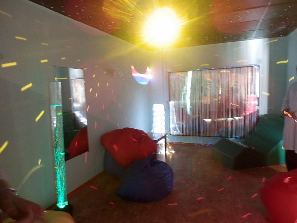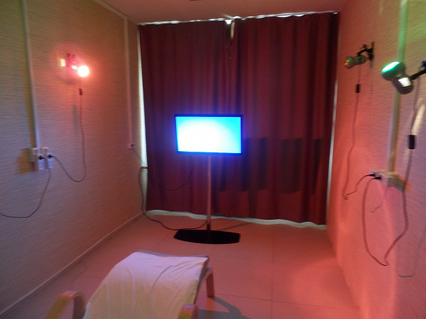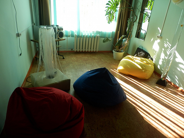 На каждом этаже диспансера своя столовая, кабинет психологической разгрузки, спортзал. Есть специальные кабинеты, где при помощи аудио- видео- световой аппаратуры у пациентов снимают стресс.