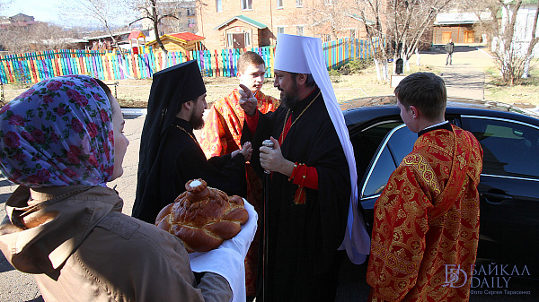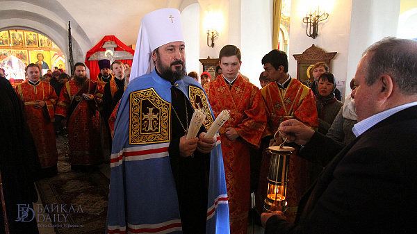 Из аэропорта его увезли в Свято-Троицкий храм и передали митрополиту Улан-Удэнскому и Бурятскому Савватию. По завершению богослужения огонь раздали всем желающим.