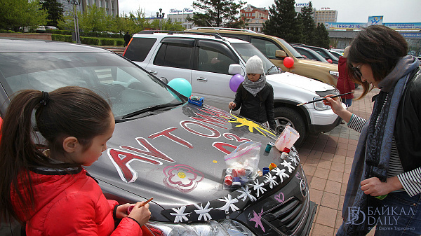 Малыши и мамы разукрасили свои авто яркими красками на различную тематику, не остались в стороне и сотрудники Госавтоинспекции. По окончании акции всем участникам инспекторы подарили световозвращающие элементы. А разрисованный кортеж проехал по городу в сопровождении патрульной машины ДПС.