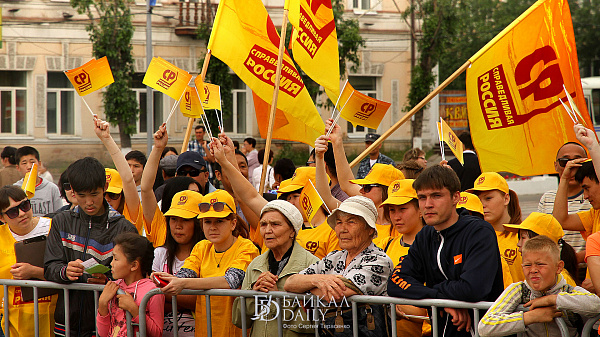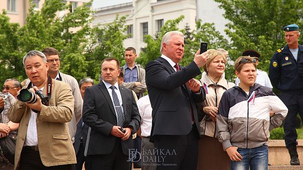 На главной площади Улан-Удэ сегодня прошёл традиционный митинг в честь Дня России. Стартовал митинг после гимна России в исполнении детского хора. Затем перед собравшимися выступили глава Бурятии Вячеслав Наговицын, председатель Народного Хурала Цырен-Даши Доржиев, и.о. мэра Улан-Удэ Александр Иринчеев.