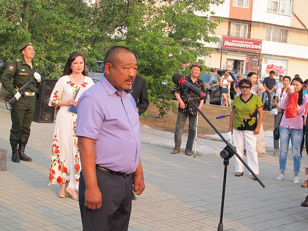 Первым поприветствовал собравшихся людей глава Бурятии. Он сказал тёплые слова в адрес Алдара и напомнил всем о мужестве.