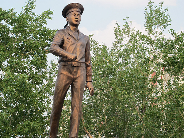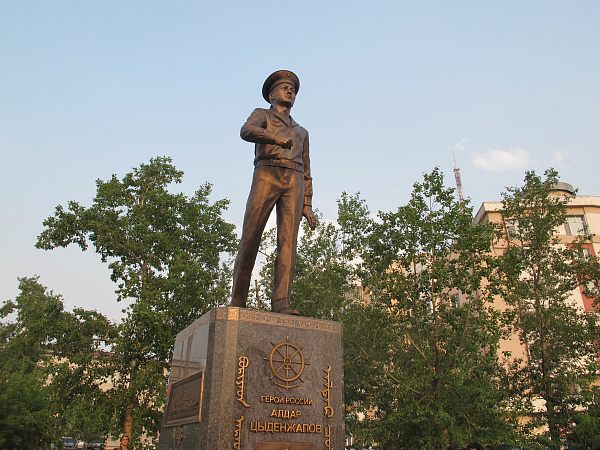 Сегодня в Улан-Удэ открыли памятник Алдару Цыденжапову. Он расположен в сквере рядом с мемориалом «Ровесникам, ушедшим в бой», который известен в народе как «Чёрный тюльпан». Герой представлен на постаменте в полный рост и одет в матросскую тельняшку и бескозырку.