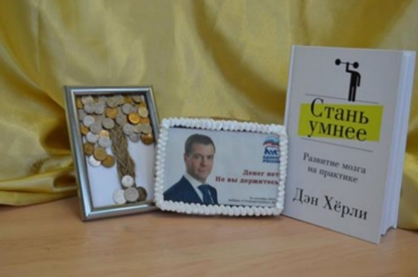 Пряник вошёл в лот, который получил название «Денег нет, но вы держитесь». Вместе с пряником на аукцион были выставлены: денежное дерево в рамке, действительно сделанное из реальных монет и книга Дэна Херли «Стань умнее». Книга без автографа, но зато, по словам аукционеров, «будет интересна всем, кто хотел бы развить свой интеллект и способности к обучению».