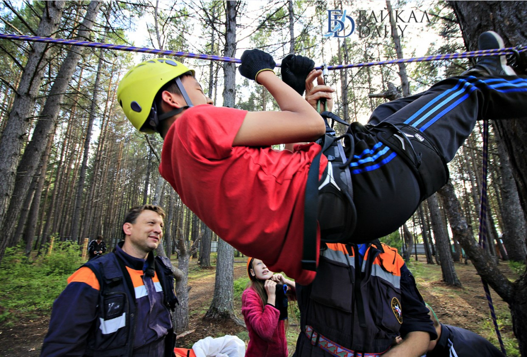 Детям рассказали об элементарных правилах поведения в лесу и на воде и устроили «урок выживания». Ребята всех возрастов учились оказывать первую медицинскую помощь, завязывать узлы и преодолевали препятствия.