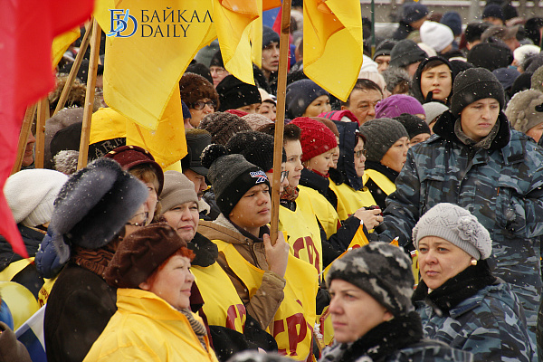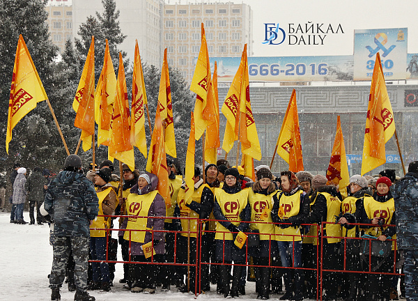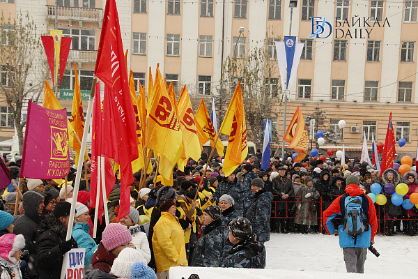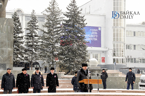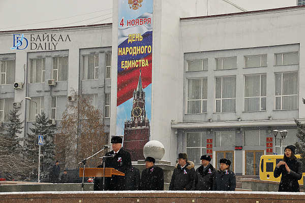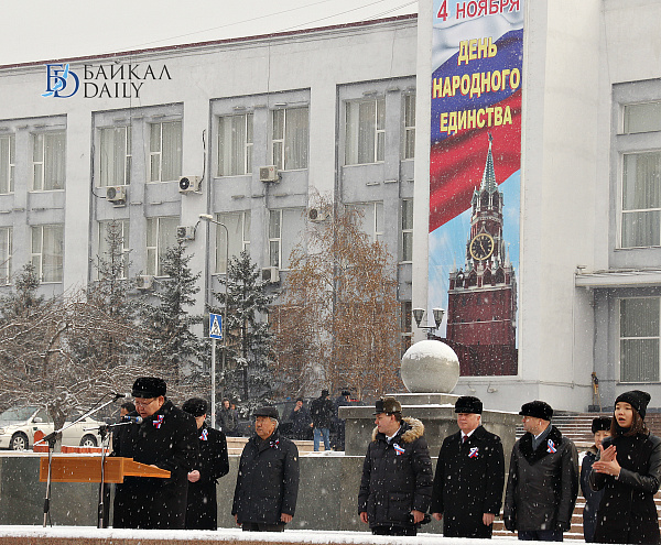 Сегодня на главной площади Улан-Удэ прошёл праздничный митинг в честь Дня народного единства. Над площадью Советов развевались флаги крупных партий и различных предприятий. Простых зрителей также оказалось весьма много, по сравнению с прошлыми годами. Среди собравшихся были глава Бурятии Вячеслав Наговицын, главный федеральный инспектор по республике Сергей Ромахин; мэрию, в отсутствие Александра Голкова, уехавшего на Дни Улан-Удэ в Москву, представлял заммэра Александр Иринчеев. А Народный Хурал был скромно представлен депутатом Игорем Марковцом.
