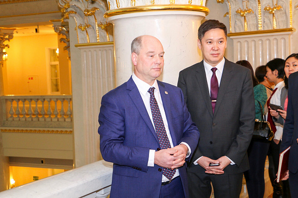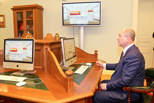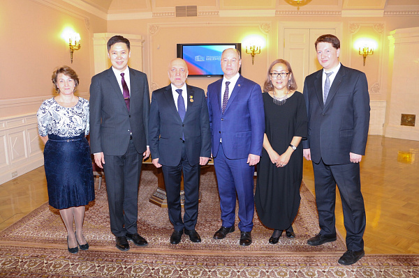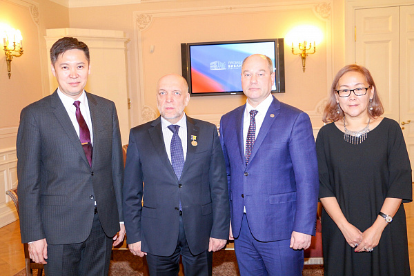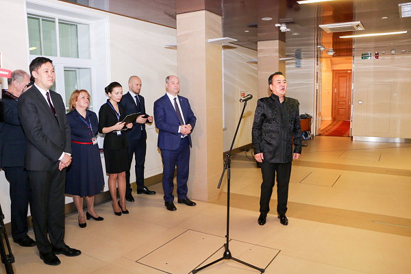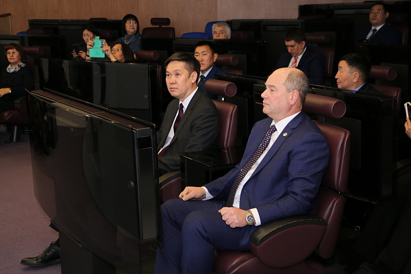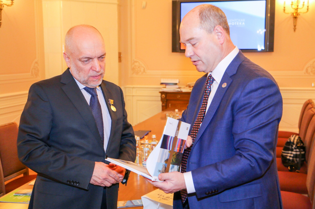 Также Александр Голков вручил юбилейную медаль, выпущенную к 350-летию города Улан-Удэ, директору библиотеки им. Ельцина Александру Вершинину. В свою очередь, Александр Вершинин вручил мэру Улан-Удэ читательский билет библиотеки.