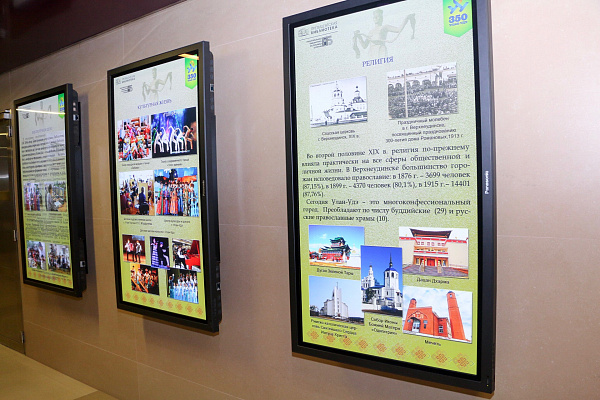 Развитие литературы, искусства и народного творчества, развитие спортивного движения, новый облик города запечатлели слайды интерактивной презентации. Посетители выставки смогут оценить, как за три столетия из таежного, бревенчатого града он превратился в красивый современный город. Для оформления выставки были использованы возможности информационных технологий, оригинальные дизайнерские решения.