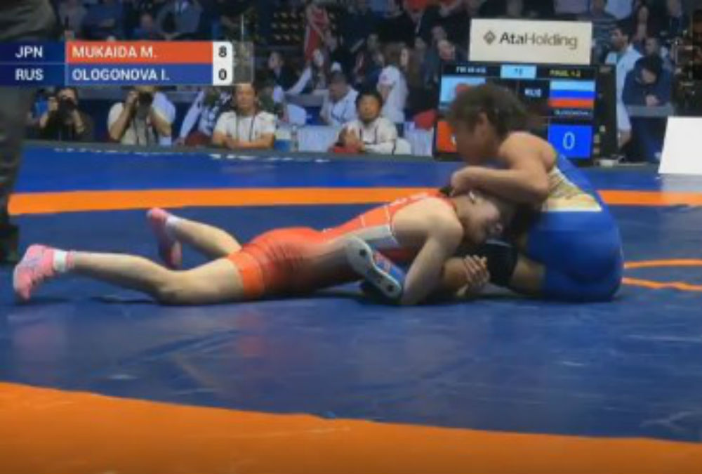 В финале Ологонова встречалась с японкой Мукайда Маю, победительницей молодёжного чемпионата мира-2016. Упорной схватки не получилось: россиянка уступила японке досрочно со счётом 0:10.